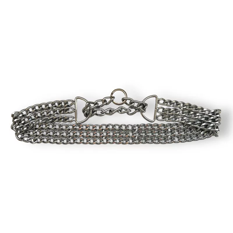 A három láncsor szélesebb felületen fekszik fel, ami kíméletesebb, mint az egysoros fojtó nyakörvek.