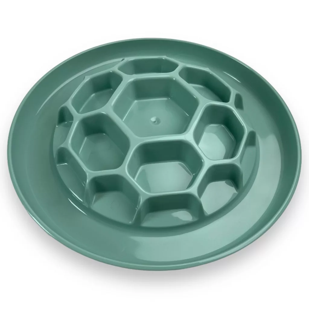 A tál alján lévő kiemelkedések játékossá teszik az evést, miközben hatékonyan lassítják a táplálékfelvételt.