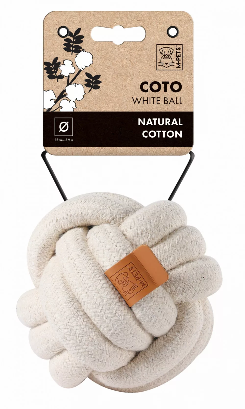 M-PETS kötéljáték labda 15cm fehér – Természetes szórakozás és fogápolás egyben