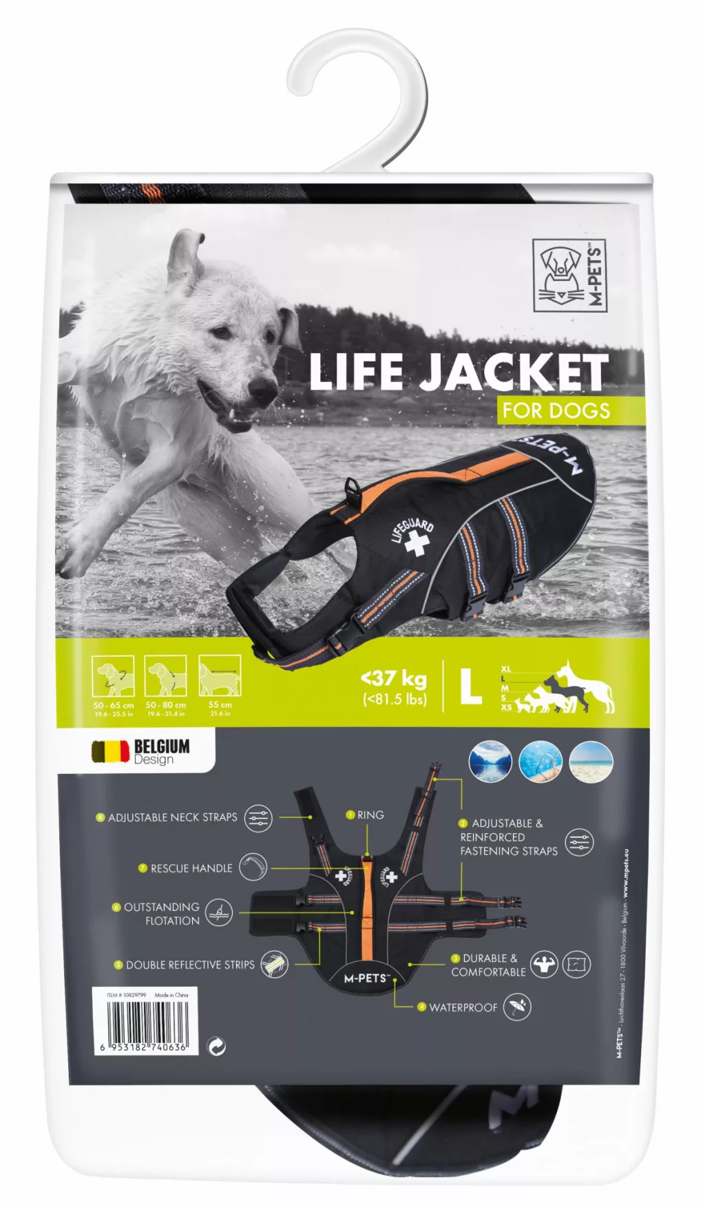 Az ergonomikus kialakításnak köszönhetően a mellény szabadon hagyja a lábakat és a vállakat, így a kutya természetes módon tud úszni és szaladni benne.