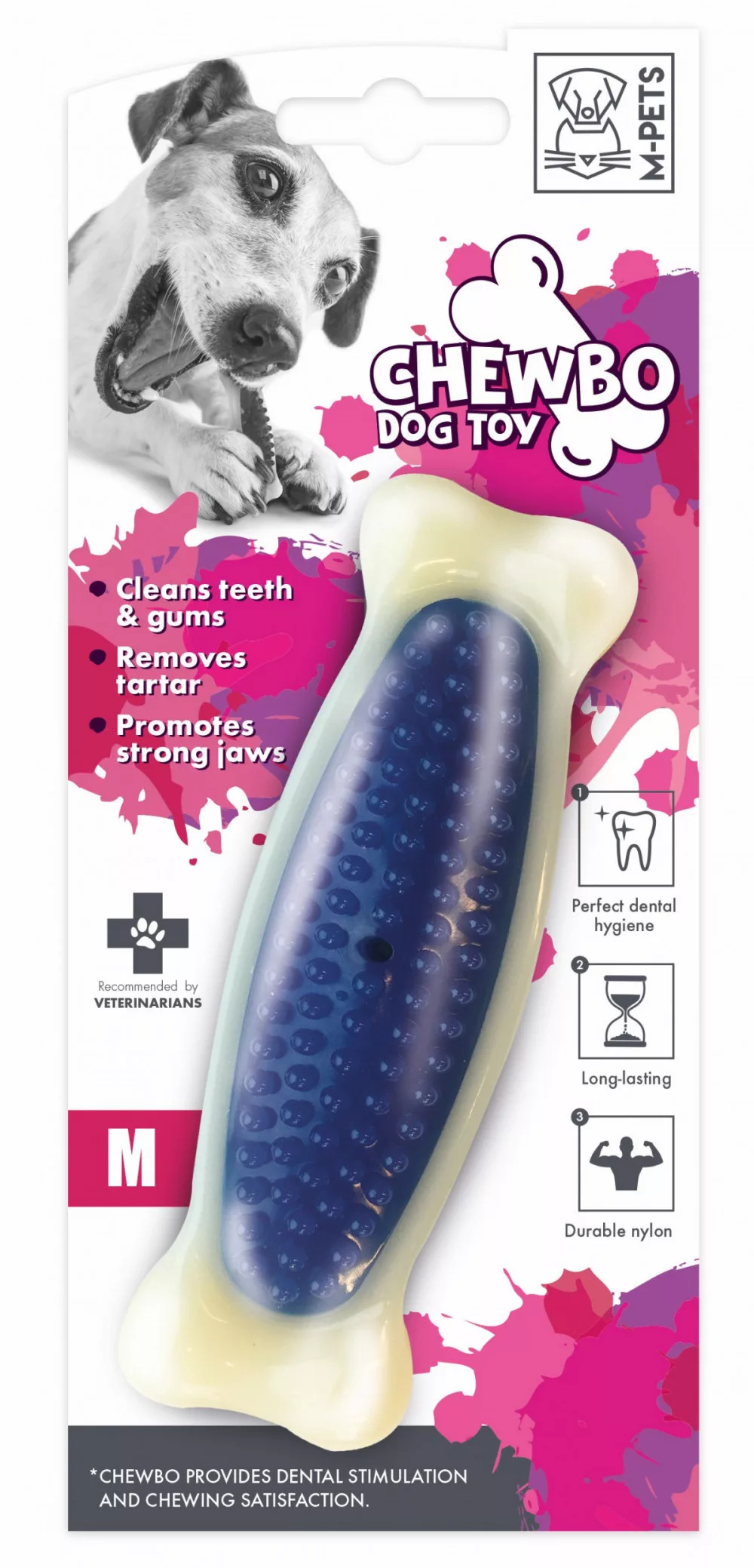 Ne várj, amíg a fogkő problémát okoz! Az M-PETS fogtisztító csonttal a játék és az ápolás kéz a kézben jár. Biztosítsd kutyádnak a napi rágás élményét, miközben gondoskodsz a friss leheletről és az erős fogakról. Rendeld meg most, és figyeld, ahogy kedvenced boldogan veti bele magát az új kedvenc játékába!