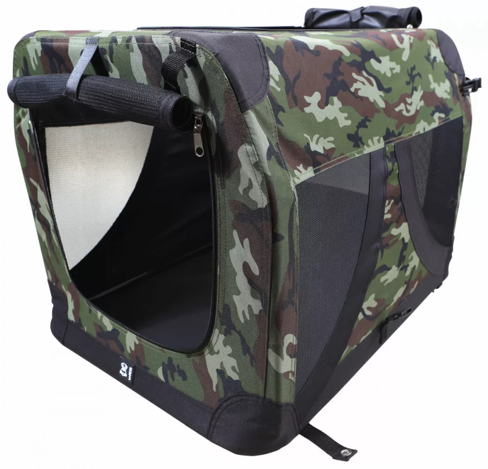 Ez a szállítótáska a strapabíró acél váz és a puha textil anyag tökéletes ötvözete. A terepszínű dizájn nemcsak stílusos, hanem praktikus is a természetjárók számára. A legfontosabb előnye mégis a rugalmasság: másodpercek alatt felállítható, használaton kívül pedig szinte semmi helyet nem foglal. A hálós oldalaknak köszönhetően kedvenced folyamatosan friss levegőhöz jut, és láthatja a környezetét, ami jelentősen csökkenti az utazási szorongást.