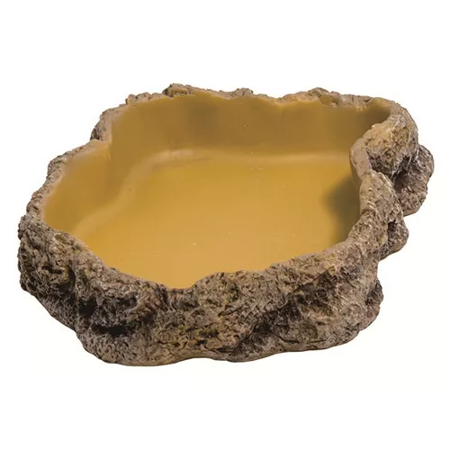 A külső magassága 50 mm, a belső mélysége pedig elegendő ahhoz, hogy közepes testű hüllők számára is megfelelő mennyiségű vizet tároljon.