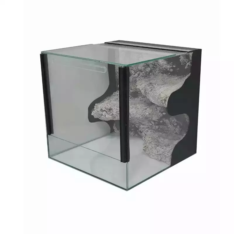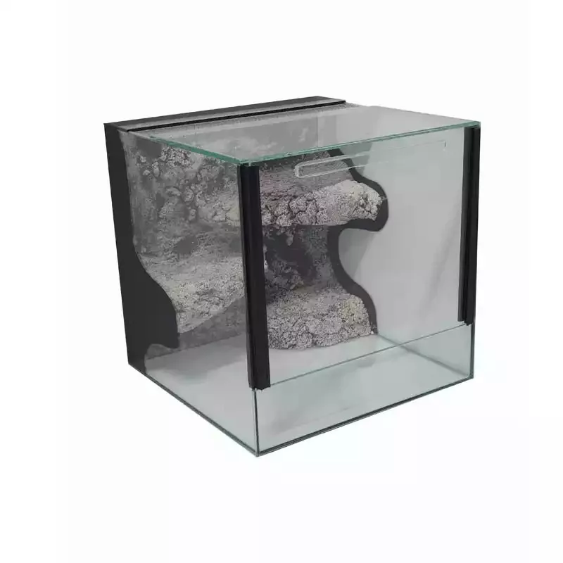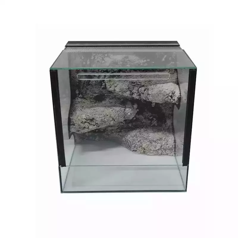 Az előre beszerelt dekoratív háttér nemcsak látványos, de búvóhelyet és mászófelületet is nyújthat az állatnak.