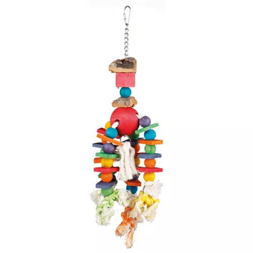 Ez a játék a madarak ősi ösztöneire épít: a rágásra, a kapaszkodásra és a mászásra. A válogatott faelemek és a strapabíró kötél kombinációja biztonságos környezetet teremt a játékhoz, miközben segít megőrizni a madár fizikai és mentális egészségét. A lógó kialakításnak köszönhetően a játék folyamatosan mozog, így minden érintés új kihívást és izgalmat jelent, segítve az unalom elűzését és a felesleges energiák levezetését.