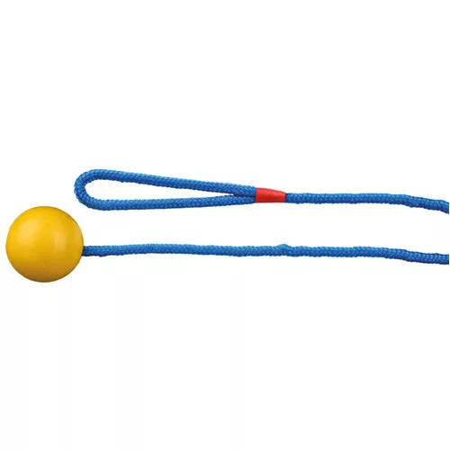A titok a zsinórban rejlik: a kb. 1 méteres hosszúság lehetővé teszi, hogy sokkal nagyobb lendülettel és pontosabban dobd el a labdát, mint kézzel, így kutyádnak nagyobb távokat kell lefutnia az apportírozáshoz. Emellett a zsinór megkönnyíti a játék visszaszerzését is, hiszen nem kell a nyálas labdát megfognod, elég a zsinórt megragadni. A kompakt, 5 cm-es labda pedig tökéletesen illeszkedik a közepes és kisebb testű kutyák szájába, miközben strapabíró kialakítása bírja az aktív igénybevételt.