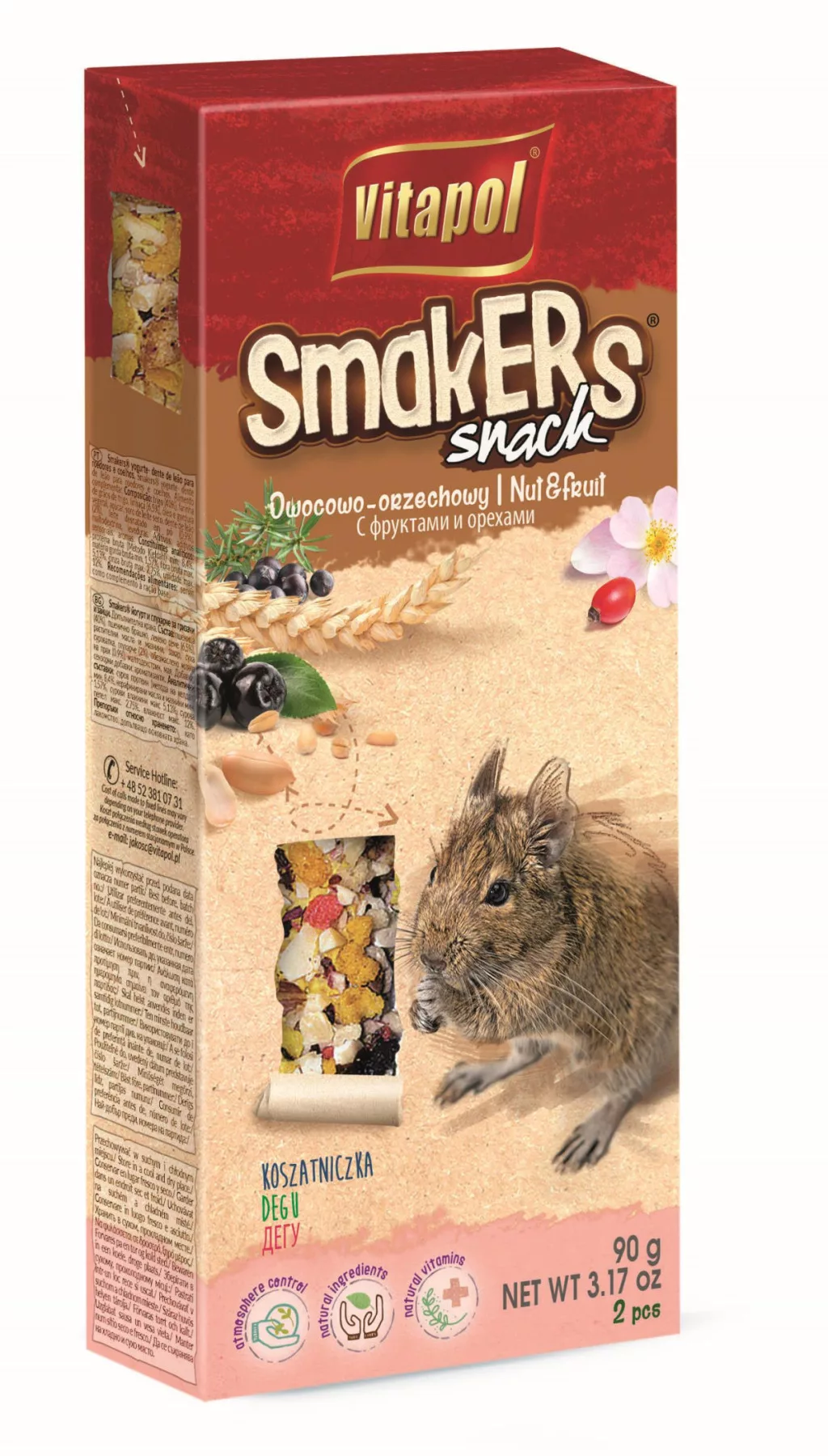 A Vitapol márka elkötelezett a kisállatok természetes táplálása mellett. Több évtizedes tapasztalatuk és a folyamatos fejlesztések révén olyan termékeket kínálnak, amelyek nemcsak ízletesek, hanem az állatok biológiai szükségleteit is szem előtt tartják. A Smakers rudak világszerte ismertek megbízható minőségükről és arról, hogy a legtermészetesebb formában hozzák el az erdők és mezők kincseit a kiskedvencek otthonába.
