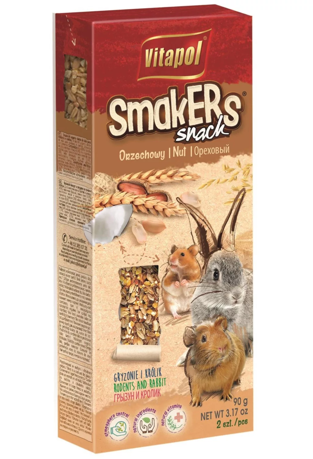 A Vitapol Smakers dupla rúd kifejezetten nyulaknak és minden típusú rágcsálónak, például hörcsögöknek, tengerimalacoknak, egereknek és patkányoknak készült.