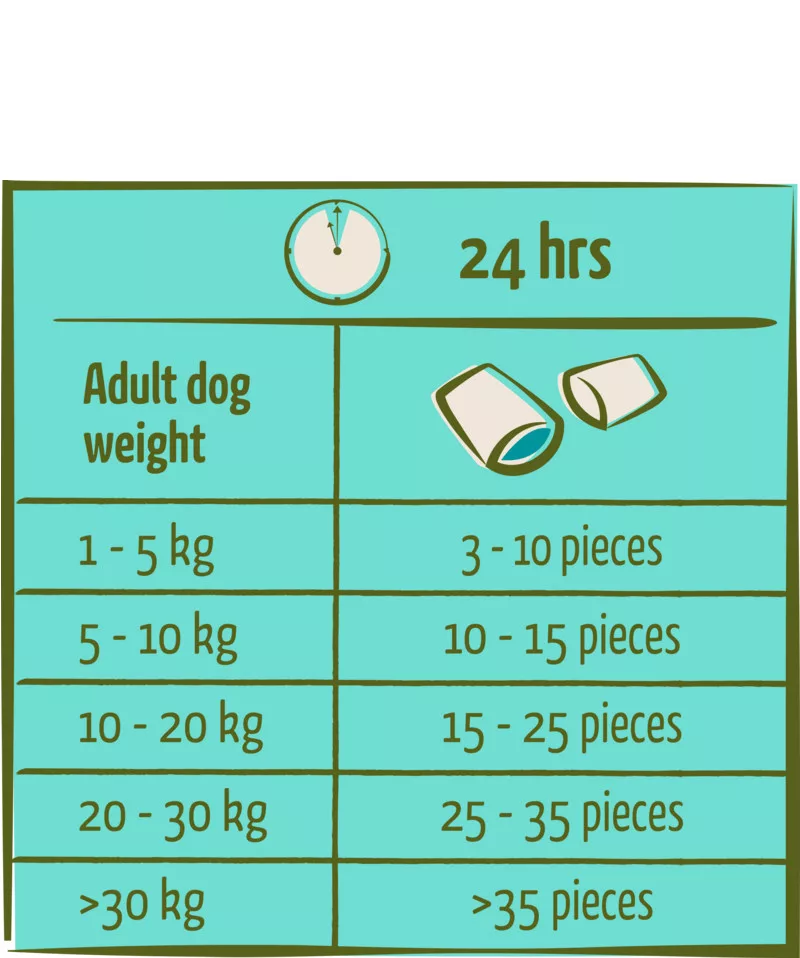 - Kistestű és idős kedvenceknek: A puha falatkákat az apró fogak vagy a rágási nehézségekkel küzdő senior kutyák is könnyen elfogyasztják.