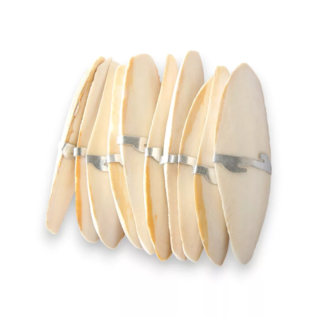 Minden csont mellé jár egy fém fül, amellyel stabilan, az aljzattól elemelve rögzítheted a szépia csontot a rácshoz.