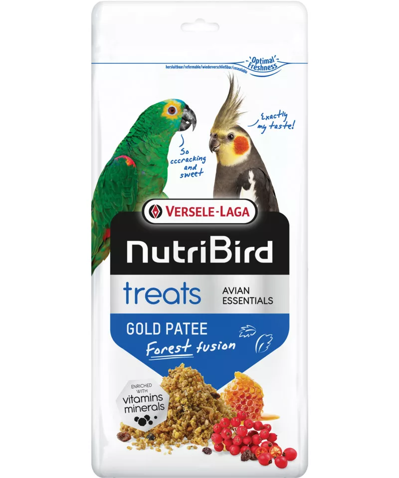 Gondoltál már arra, hogy a madaraid a természetben mennyire összetett és változatos étrenden élnek? A vadonban nem csupán száraz magvakat csipegetnek; folyamatosan keresik a lédús bogyókat és az energiadús forrásokat. A NutriBird Treats Gold Forest Fusion pontosan ezt a „vadon-élményt” hozza el kedvencednek: ez egy használatra kész, 100%-ban természetes mézzel, tojással és erdei gyümölcsökkel dúsított prémium lágyeleség, amely segít madaradnak a csúcsforma és a ragyogó megjelenés elérésében.