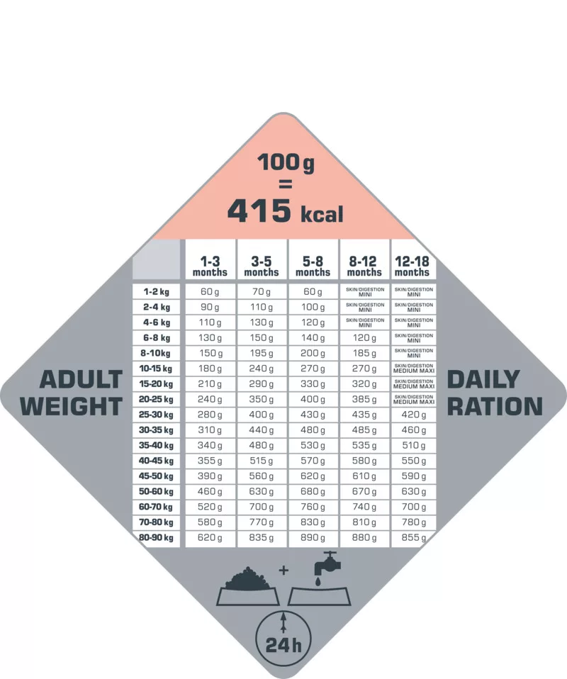 Ezt az eledelt a választástól körülbelül 10-12 hónapos korig javasolt adni, amíg a kiskutya el nem éri a felnőttkori méretét.