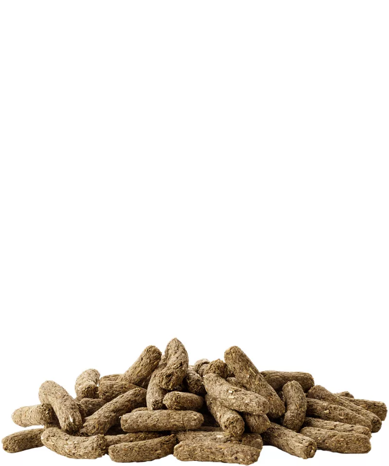 A nyulak foga hetente akár 2-3 mm-t is nőhet! Ha nem kopik, fájdalmas tüskék alakulnak ki, amik felsértik a nyelvet. A Complete Cuni pelletek különlegesek: nem darált porból, hanem hosszú, egész rostokból (Long Fibres) állnak, főleg Timothy szénából. Ezeket a kemény, szilikátban gazdag rostokat a nyúlnak sokáig és erősen kell őrölnie a hátsó fogaival, ami a természetes kopás alapja.